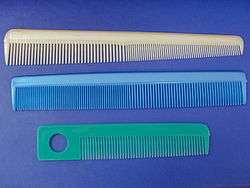 - comb (a toothed implement used for grooming one's hair)