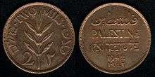 From the image of a coin from the british mandate of Palestine, in which a tree was engraved on the heads, and the word PALESTINE on the tails.