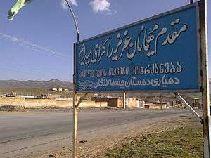 The sign welcoming comers in Georgian near Sibak, Isfahan, Iran as they comprise a large part of its inhabitants