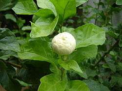 茉莉 (matsuri): a budding jasmine plant, Jasminum sambac.