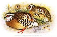 - A taxonomic species within the family Phasianidae – the bar-backed partridge.