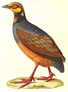- A taxonomic species within the family Phasianidae – the chestnut-bellied partridge.