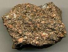 Arkose with grains of K-feldspar (pinkish-orangish) and quartz (gray)