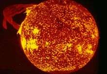 - A massive burst of solar wind, other light isotope plasma, and magnetic fields rising above the solar corona or being released into space.