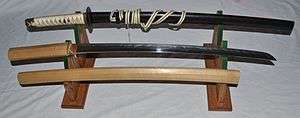 - A type of Japanese longsword, 日本刀 (にほんとう, nihontō) having a single edge and slight curvature, mostly used by samurais and ninjas.