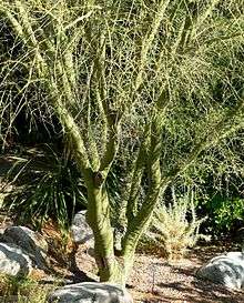 - (US) Any of a variety of trees in the genus Parkinsonia, with characteristic green bark, found in desert areas of North America.