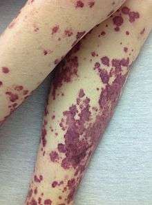 - A small spot, especially on an organ, caused by bleeding underneath the skin
