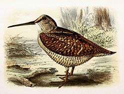 - woodcock (several bird species of the genus Scolopax, especially Scolopax rusticola)