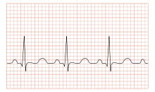 An electrocardiogram showing sinus tachycardia of about 100 beats per minute