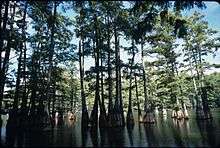 - A taxonomic genus within the family Cupressaceae – large conifers that grow in swampy and riparian environments from the southeastern US to Guatemala.